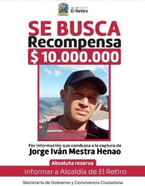 Luego de ese suceso que lamentaron, de inmediato ofrecieron hasta 10 millones de pesos de recompensa para ubicar y capturar al presunto responsable del feminicida identificado como Jorge Iván Mestra Henao. Pero este martes el gobernador de Antioquia Andrés Julián Rendón anunció mediante la red social X que la recompensa fue elevada a 20 millones de pesos para incentivar la denuncia y capturar a este hombre que golpeó a la víctima hasta dejarla inconsciente durante varias horas en un paraje rural lo que finalmente le causó la muerte.