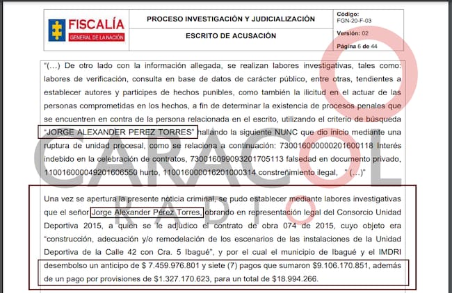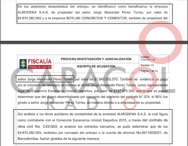 El dato revelador del escrito de acusación conocido por Caracol Radio es que, los dineros se movieron a través de empresas cuyo dueño era Jorge Alexander Pérez Torres, alias ‘El Chatarrero’ y uno de los cerebros de ese entramado de corrupción.