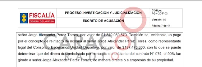 La Fiscalía los acusa porque se apropiaron de más de $18 mil millones de los dineros del anticipo del contrato 074 de 2015, cuyo objeto era la construcción y remodelación del escenario deportivo de La 42 con quinta, que nunca se hizo.