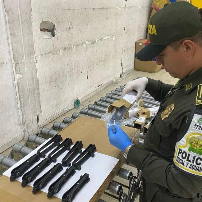 La Policía Fiscal y Aduanera (Polfa) reportó este miércoles la incautación de partes y accesorios para 10 pistolas y 14 fusiles, así como munición para diferentes tipos de armas de fuego. El decomiso se dio en el marco de la ‘Operación Bogotá’.
