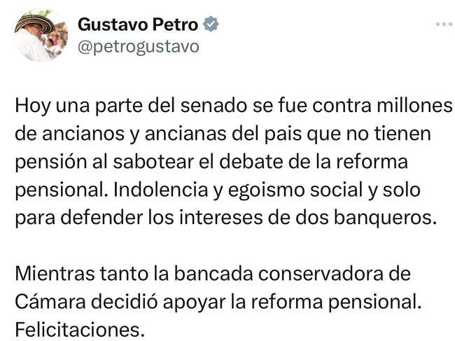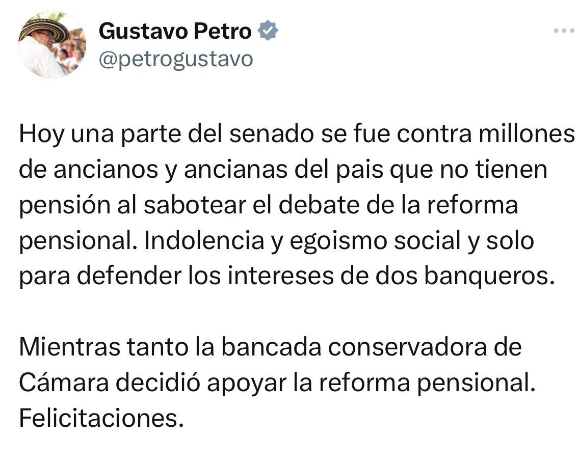 Minutos después, el presidente Gustavo Petro felicitó a través de su cuenta de X (antes Twitter) a los congresistas que respaldaron la idea. Sin embargo, pese a que la mayoría de la bancada había firmado, cerca de 20 representantes decidieron retirar su apoyo a la propuesta.