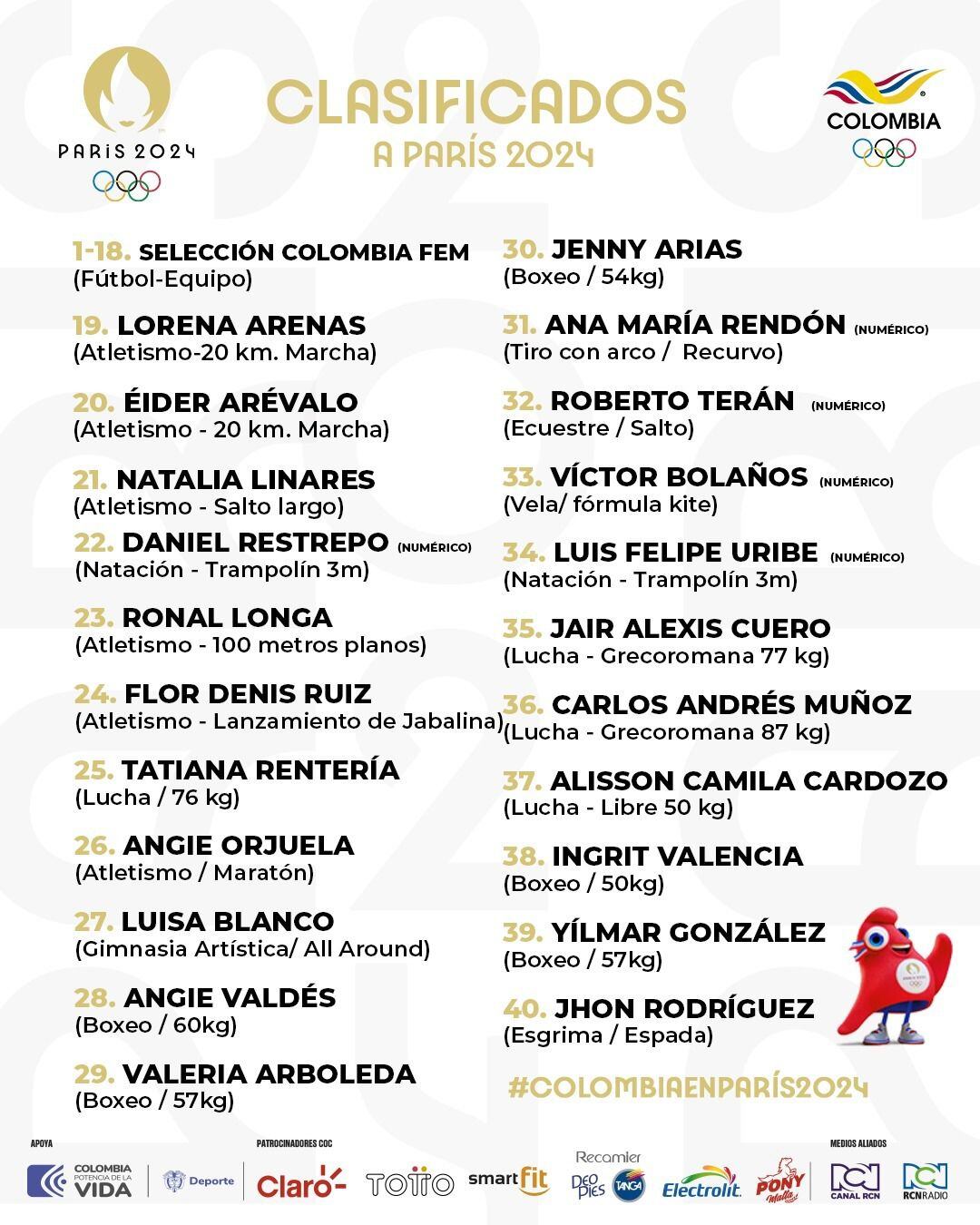 Clasificados a los Juegos Olímpicos por Colombia / COC