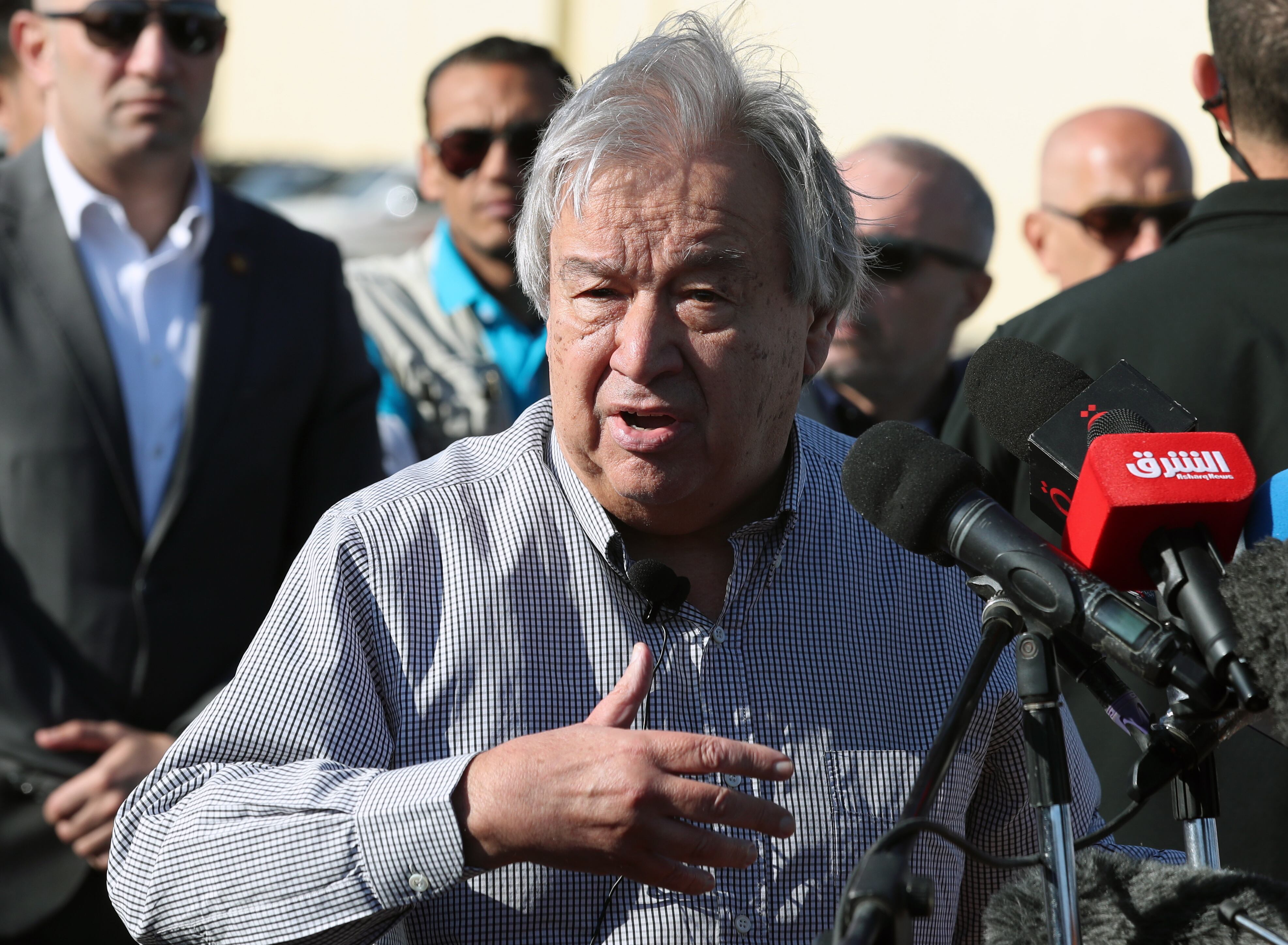 “Es hora de crear esperanza para el pueblo palestino de que habrá un Estado palestino”, dijo Guterres en una rueda de prensa desde el aeropuerto de Arish, en Egipto, después de visitar el cruce fronterizo de Rafah, que conecta la península del Sinaí con la Franja de Gaza.