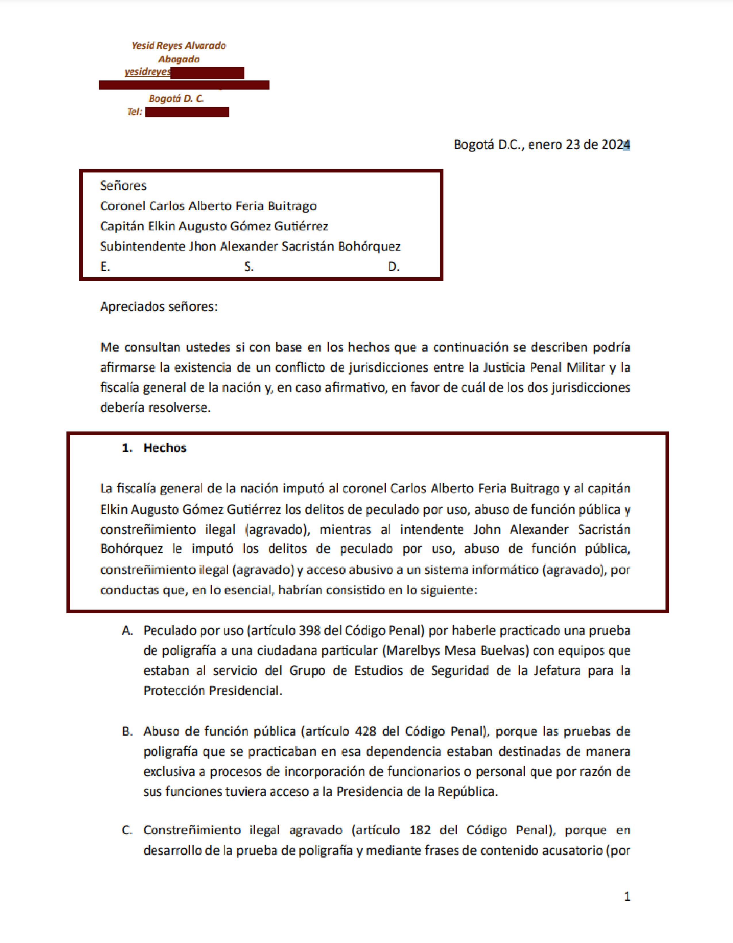Caracol Radio conoció que luego de que un fiscal militar reclamara la competencia para asumir el caso por el uso del polígrafo a Marelbys Mesa, la defensa del coronel Carlos Feria, recopiló esos dos conceptos para que sean examinados por la Corte Constitucional.