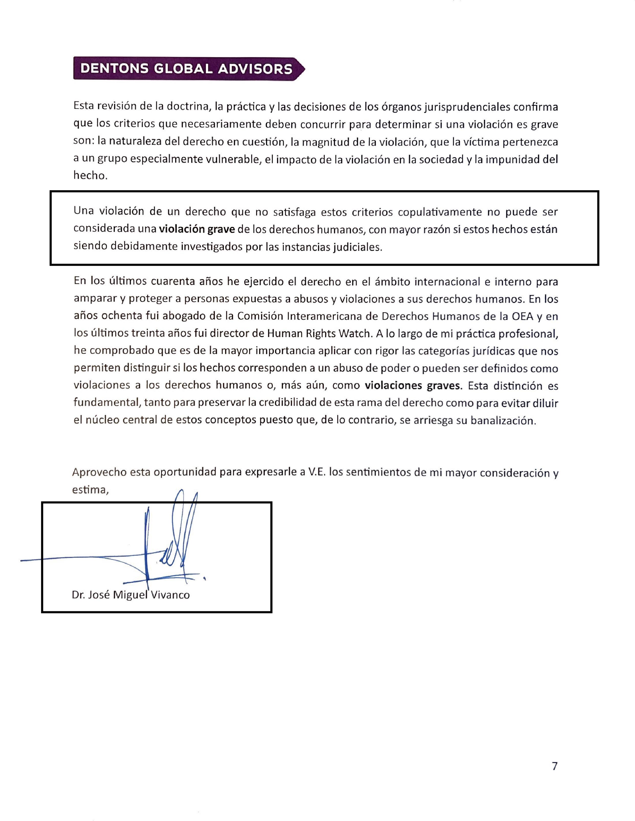 Vivanco, es el ex director de la División de las Américas de Human Rights Watch, y en su concepto afirmó que desde la perspectiva del derecho internacional no corresponde a la justicia ordinaria investigar los hechos atribuidos al coronel Carlos Feria.