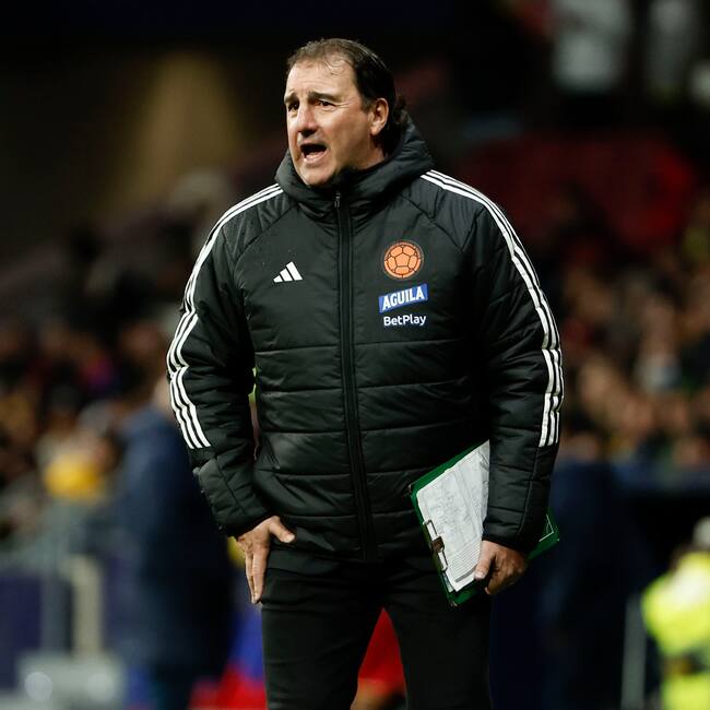 MADRID, 26/03/2024.- El seleccionador de Colombia, Néstor Lorenzo, da instrucciones durante el partido amistoso que las selecciones de fútbol de Colombia y Rumanía disputan hoy martes en el estadio Metropolitano, en Madrid. EFE/Sergio Pérez / SERGIO PEREZ (EFE)
