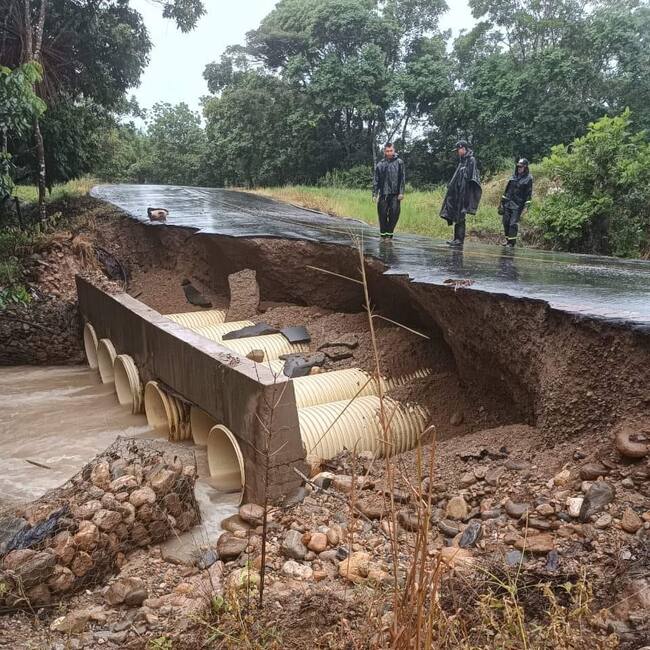Imágenes recientes muestran cómo la fuerza del agua ha arrastrado parte de la vía, lo que representa un riesgo inminente para los conductores que transitan por la zona.