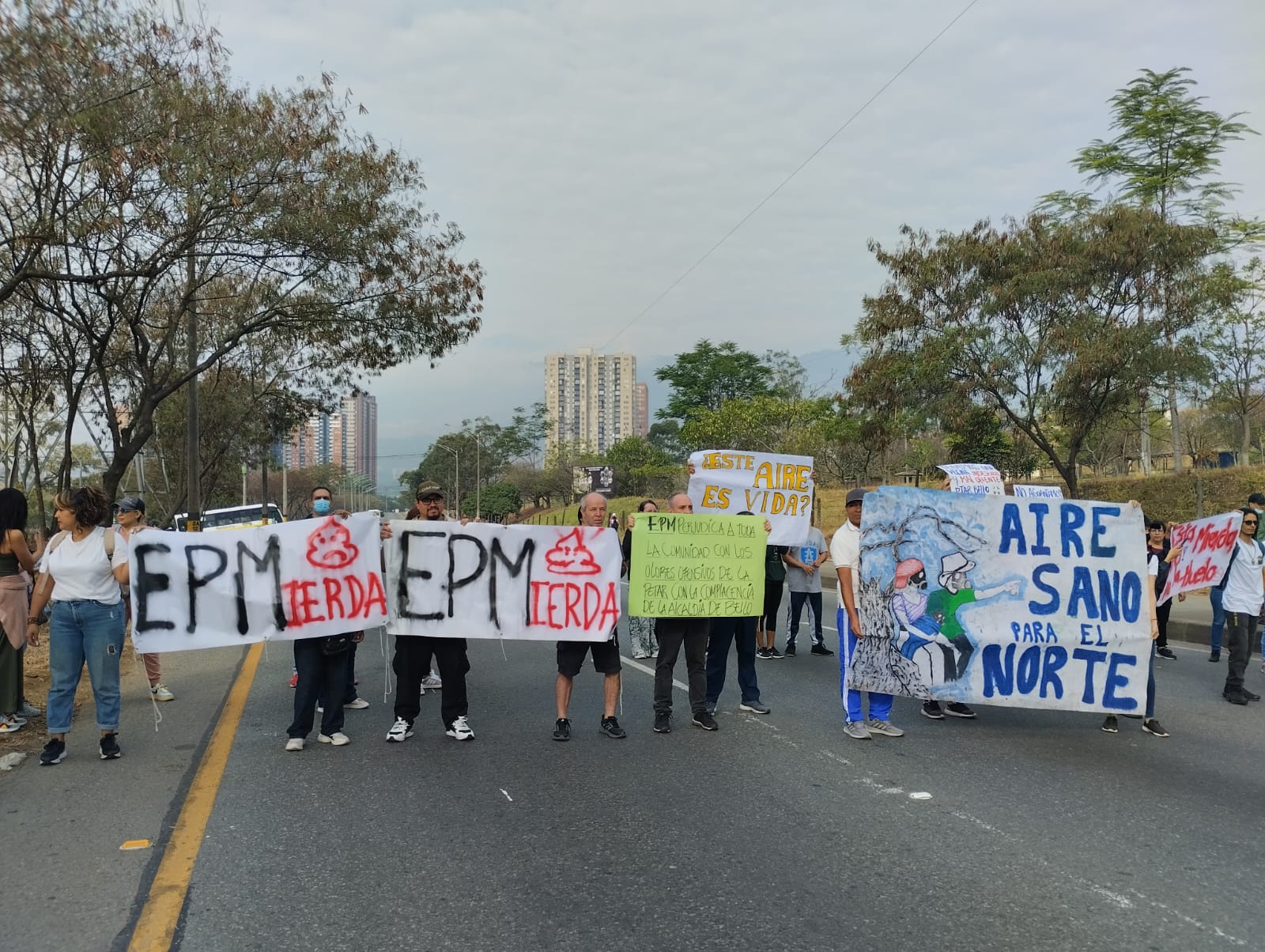 “Han manifestado constantemente que están ajustando procesos y ya ahora últimamente lo que manifiestan es que todo está bien, que están trabajando bien, que no tienen problemas, pero la comunidad se está quejando de olores a materia fecal, a podrido, a cañería, y no nos solucionan. Desafortunadamente el área metropolitana, que es la que tiene que intervenir a EPM, a quienes hemos colocado quejas constantes, toda la comunidad manifiesta que mandan tripulaciones y que no sienten olores, o sea, que se están tapando a EPM, y entonces por eso la gente se ve obligada a manifestarse de esta manera, tomando vigilancia”, dijo Alexander Álvarez, presidente de la veeduría de afectados por la PTAR.