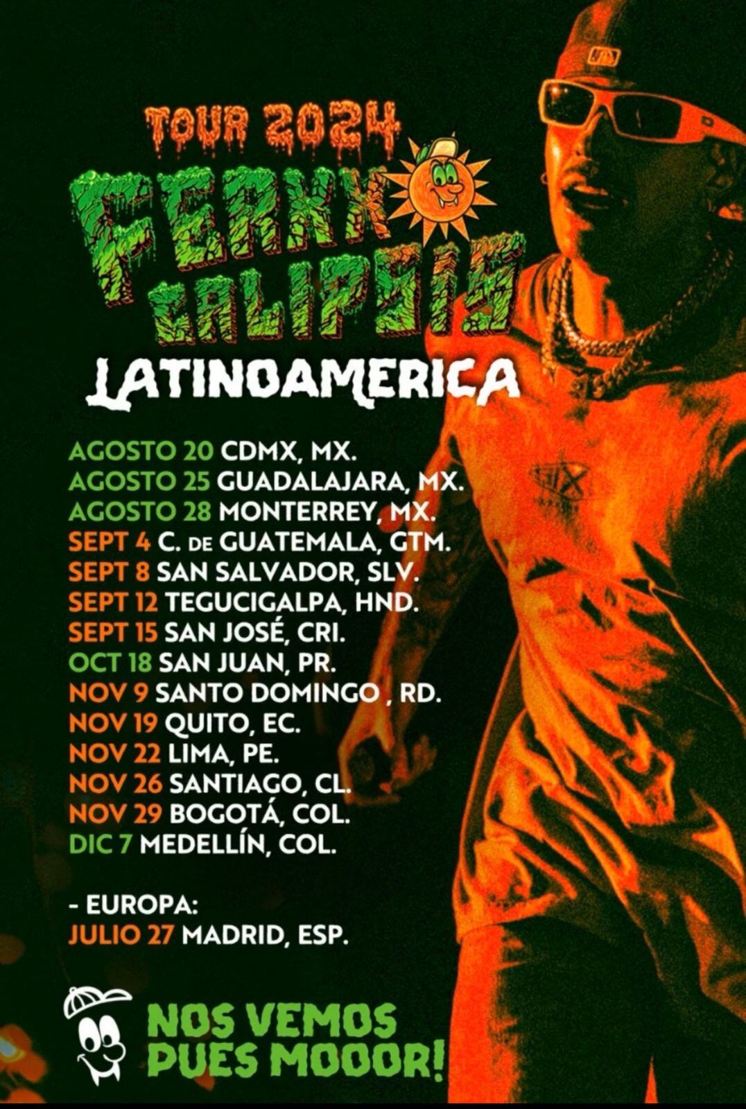 Al registrarse en la página web del reguetonero paisa Feid, ya se pueden ver las fechas de su próxima gira FERXXOCALIPSIS. Por ahora se sabe que el artista comenzará su tour el 20 de agosto en Ciudad de México y estará por 10 países latinoamericanos entre esos Ecuador, Perú, Chile y Colombia.
