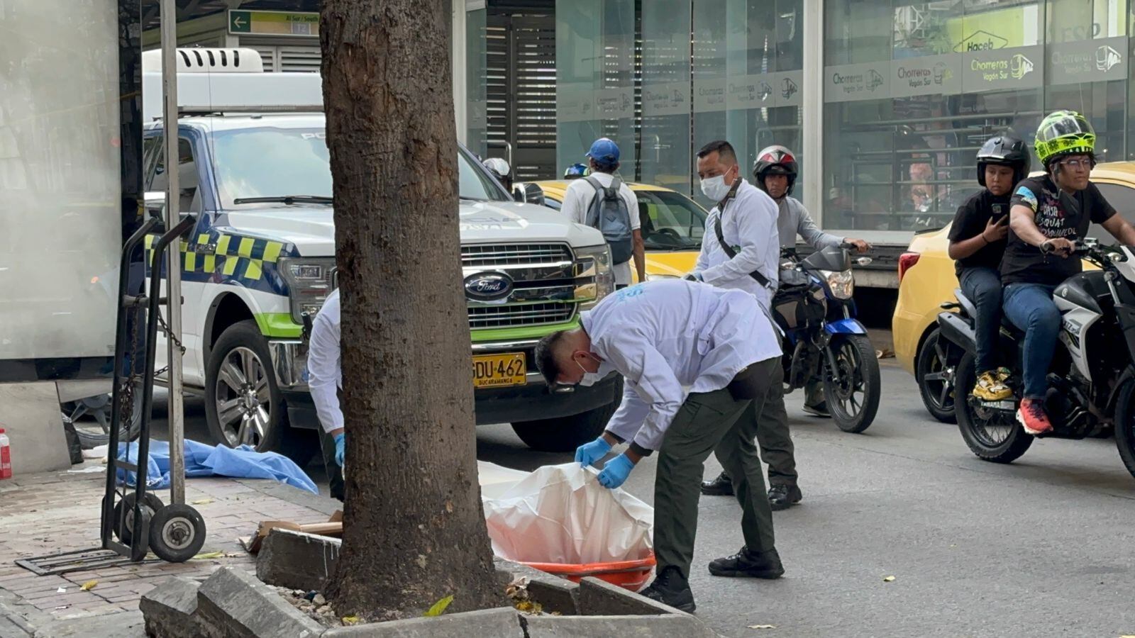 Hasta este punto del centro de Bucaramanga llegó el secretario de desarrollo social, Iván Torres, quien se refirió a este hecho y señaló que “hace algunos minutos pierda la vida de manera lamentable una persona, estamos esperando los resultados del cuerpo técnico, están realizando el levantamiento del cuerpo para saber qué pasó”.