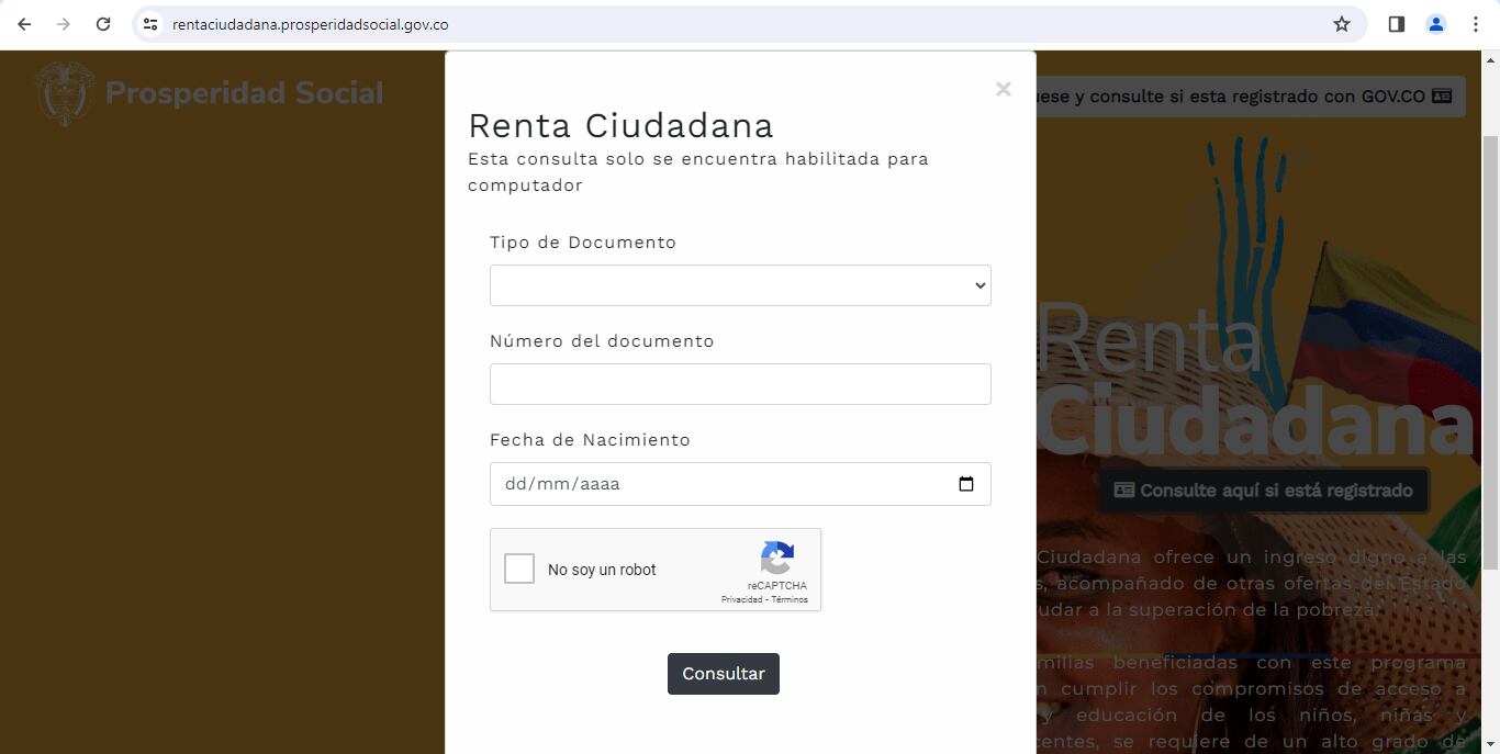 Programa 'Renta Ciudadana' del Departamento de Prosperidad Social del Gobierno Nacional.