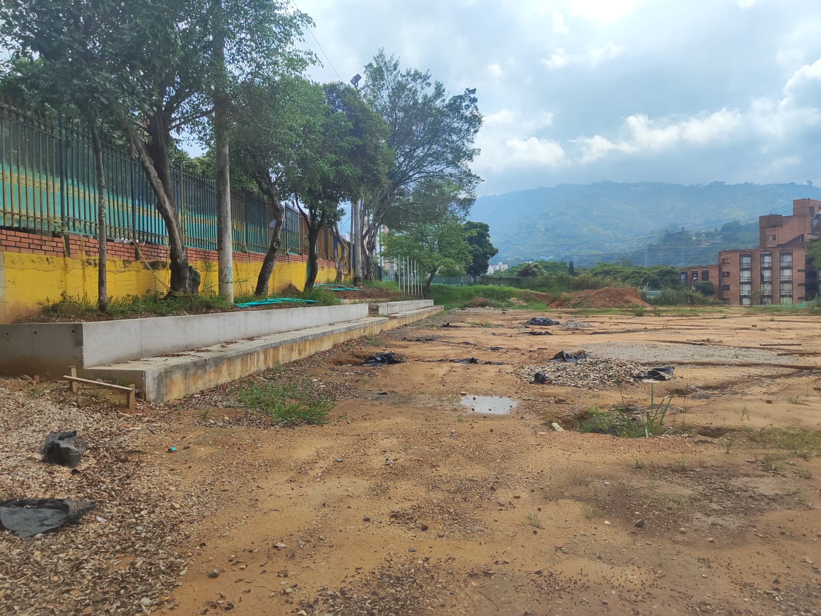 Actualmente solo hay dos casetas abandonadas, lodo, algunos tubos del arco de la cancha y uno que otro pedazo de cemento.