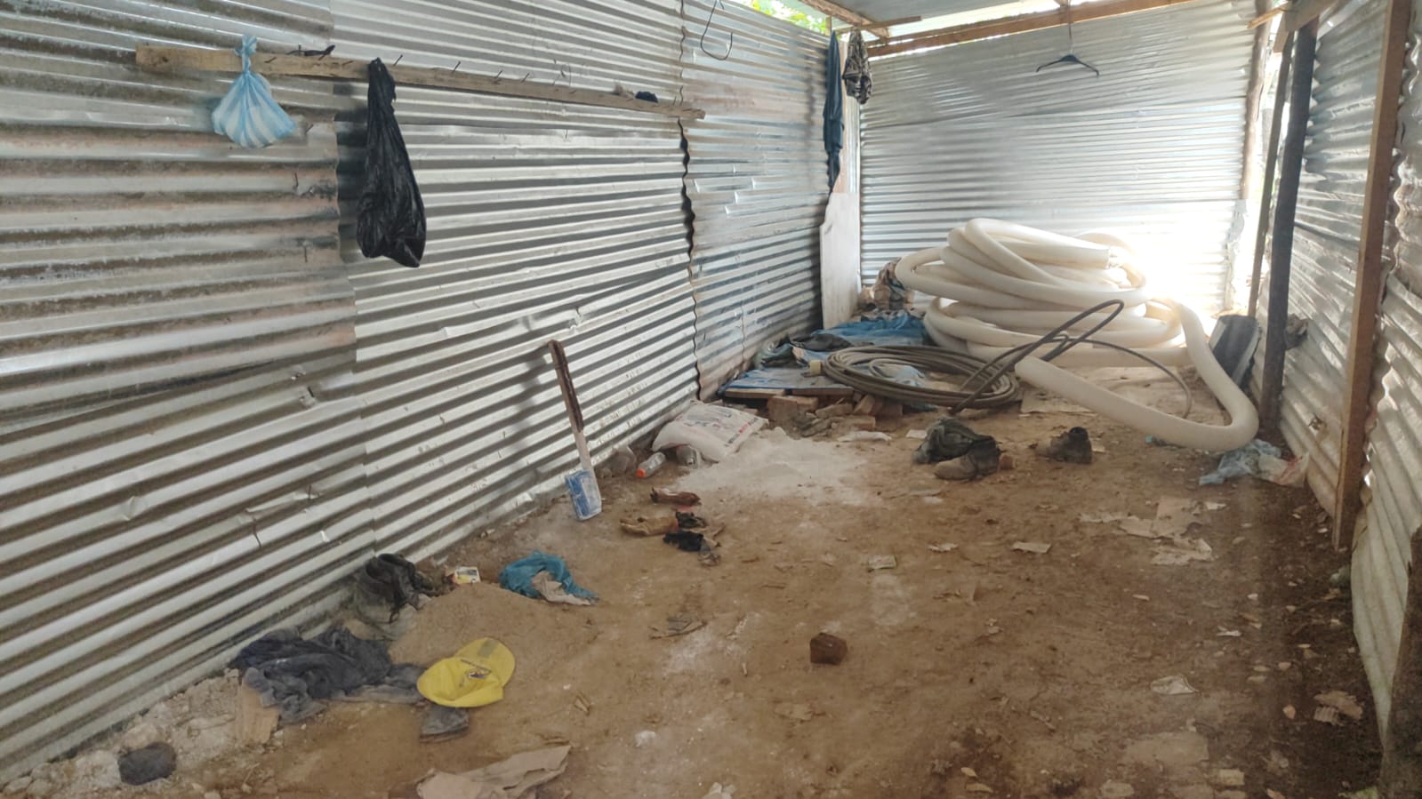 El presidente de la JAC del barrio dijo que se mantiene solo. En las casetas incluso aún hay ropa de los trabajadores que alguna vez estuvieron en la obra.