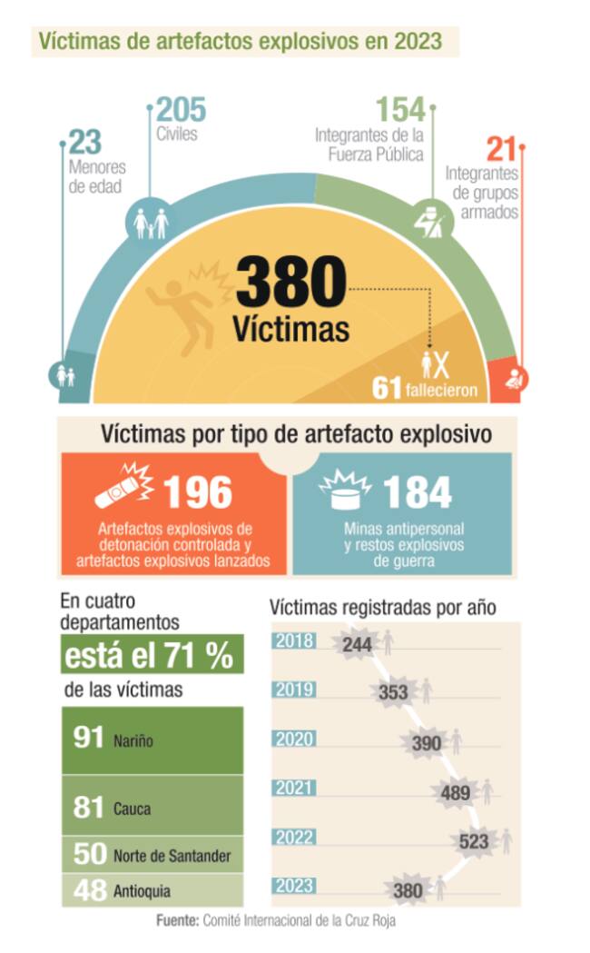 Por otra parte, en 2023 se registraron 380 víctimas directas por artefactos explosivos.