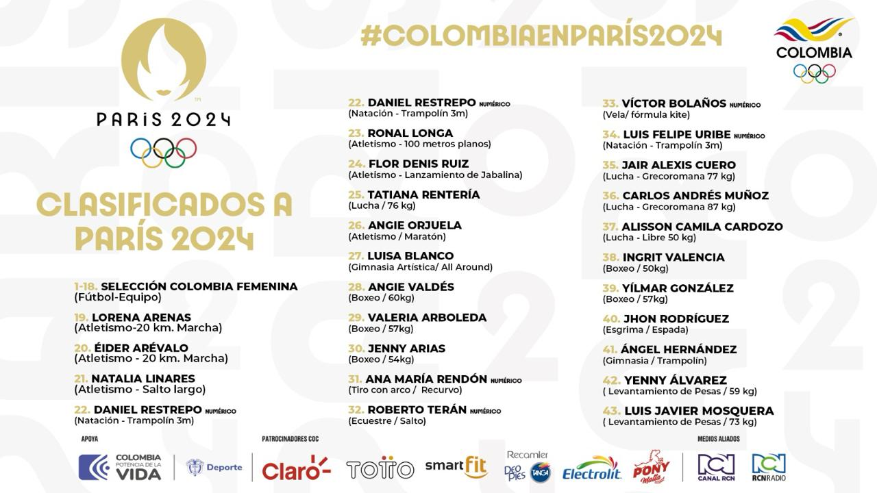 De momento, son 19 nominales y 24 numéricos, repartidos en 11 federaciones deportivas nacionales, los cupos conseguidos para la delegación nacional. Fútbol, atletismo, natación, lucha, gimnasia, boxeo, ecuestre, tiro con arco, vela y esgrima, son los otros deportes que tendrán representación de los nuestros en París.