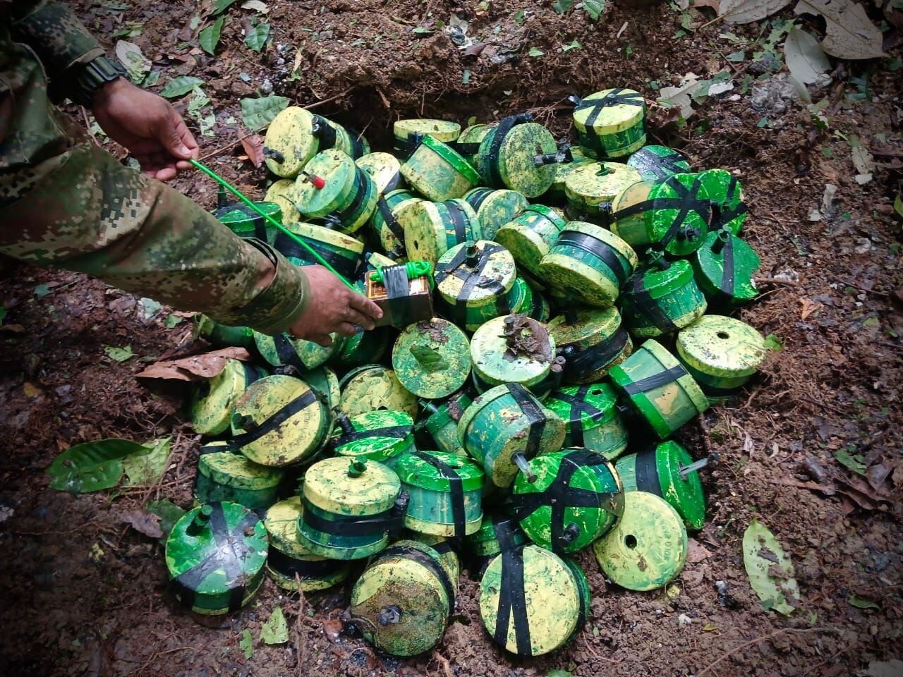 En zona rural del municipio de Puerto Concordia al sur del departamento de Meta las Fuerzas Militares encontraron un depósito ilegal con más de 2.500 artefactos explosivos que pertenecerían a la estructura Jorge Suárez Briceño, del Estado Mayor Central de las Farc.