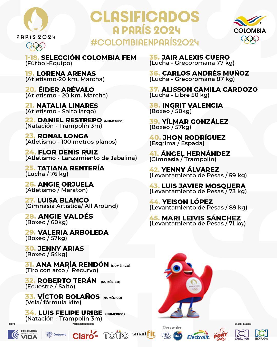 Deportistas colombianos clasificados a los Juegos Olímpicos de París 2024 / Comité Olímpico Colombiano.