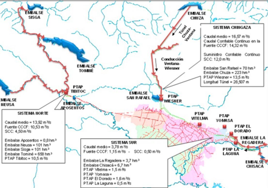 Desde estos páramos el Distrito realiza la captación, almacenamiento, tratamiento y distribución; a través de los embalses, plantas de tratamiento y redes de distribución.
