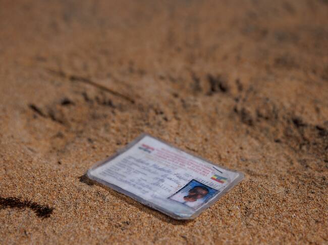 GODORYA, DJIBOUTI - JANUARY 19: An Ethopian ID document discarded by a migrant as they boarded a trafficker's boat is seen on January 19, 2024 in Godorya, Djibouti. The recent attacks on commercial ships by Yemen's Houthi rebel group, which have prompted a series of air strikes by the United States and its allies in response, have not just imperilled a vital shipping route, but also the popular "Eastern Route" for migrants heading from Ethiopia to Saudi Arabia, via Djibouti and the Bab al-Mandab Strait that connects the Gulf of Aden and Red Sea. The strait is also a heavily trafficked shipping route on the way to the Suez Canal. (Photo by Luke Dray/Getty Images) / Luke Dray