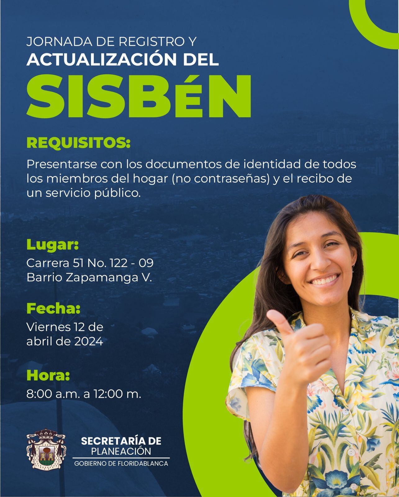 Desde las 8:00 a.m. hasta las 12:00 p.m. las personas que deseen registrarse o actualizar sus datos en el Sisbén pueden hacerlo en el barrio Zapamanga V en la carrera 51 No. 122-09.