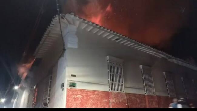 Las fuertes llamas destruyeron la antigua casa de la cultura de Sopetrán. Foto: Denuncias Antioquia .