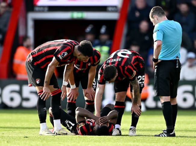 El colombiano fue atendido por el cuerpo médico y sustituido de inmediato, en su lugar ingresó británico Lloyd Kelly. A pesar de haber abandona el terreno por sus propios medios, la frustración era notable en la cara del colombiano, mientras se dirigía al banco de suplentes del español Andoni Iraola.
