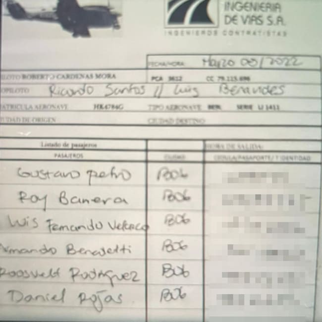 La investigación de La Silla Vacía revela el manifiesto de vuelo donde aparecen los nombres de los otros pasajeros: