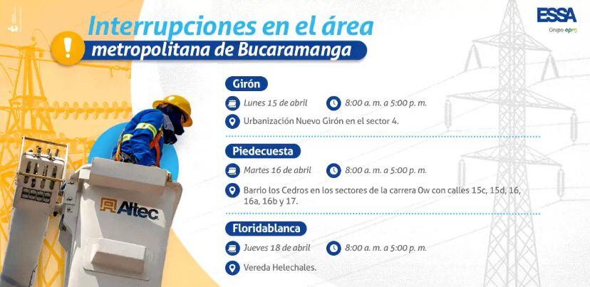 En Bucaramanga y Piedecuesta se interrumpe el servicio de energía.