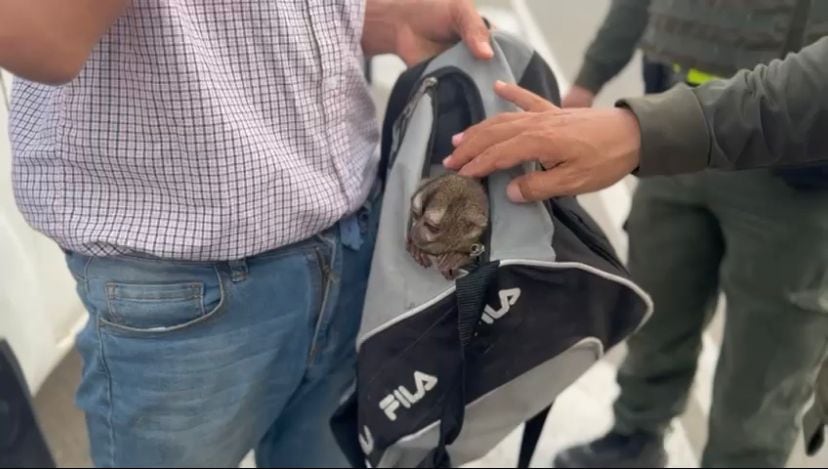 Las unidades de Control y tránsito del Magdalena Medio se encontraban realizando operativos viales por La Ruta del Sol, donde encontraron un hombre que llevaba un mico nocturno dentro de su morral.