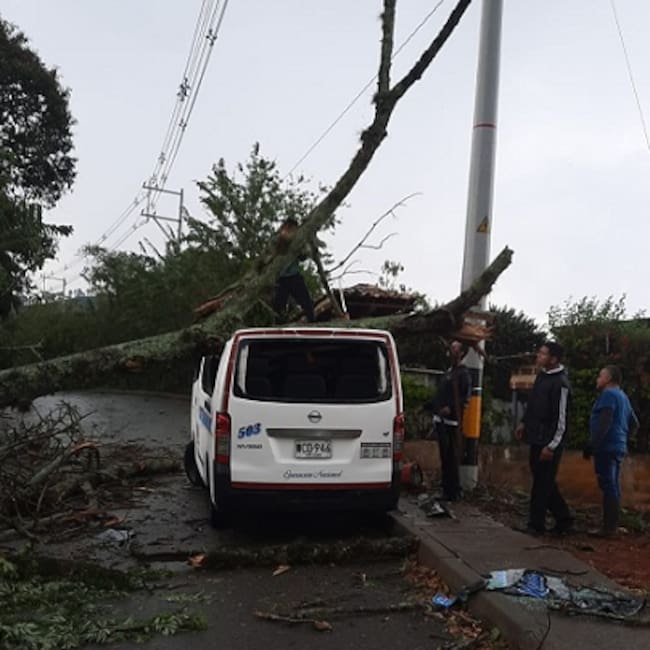 “En la avenida Medellín, un árbol grande le cayó a un vendedor ambulante, en este momento ya lo tenemos estable en el hospital, pero lo tenemos que remitir para la ciudad de Medellín porque tienen un trauma en la cabeza y en otras partes del cuerpo, entonces tenemos que remitirlo”.