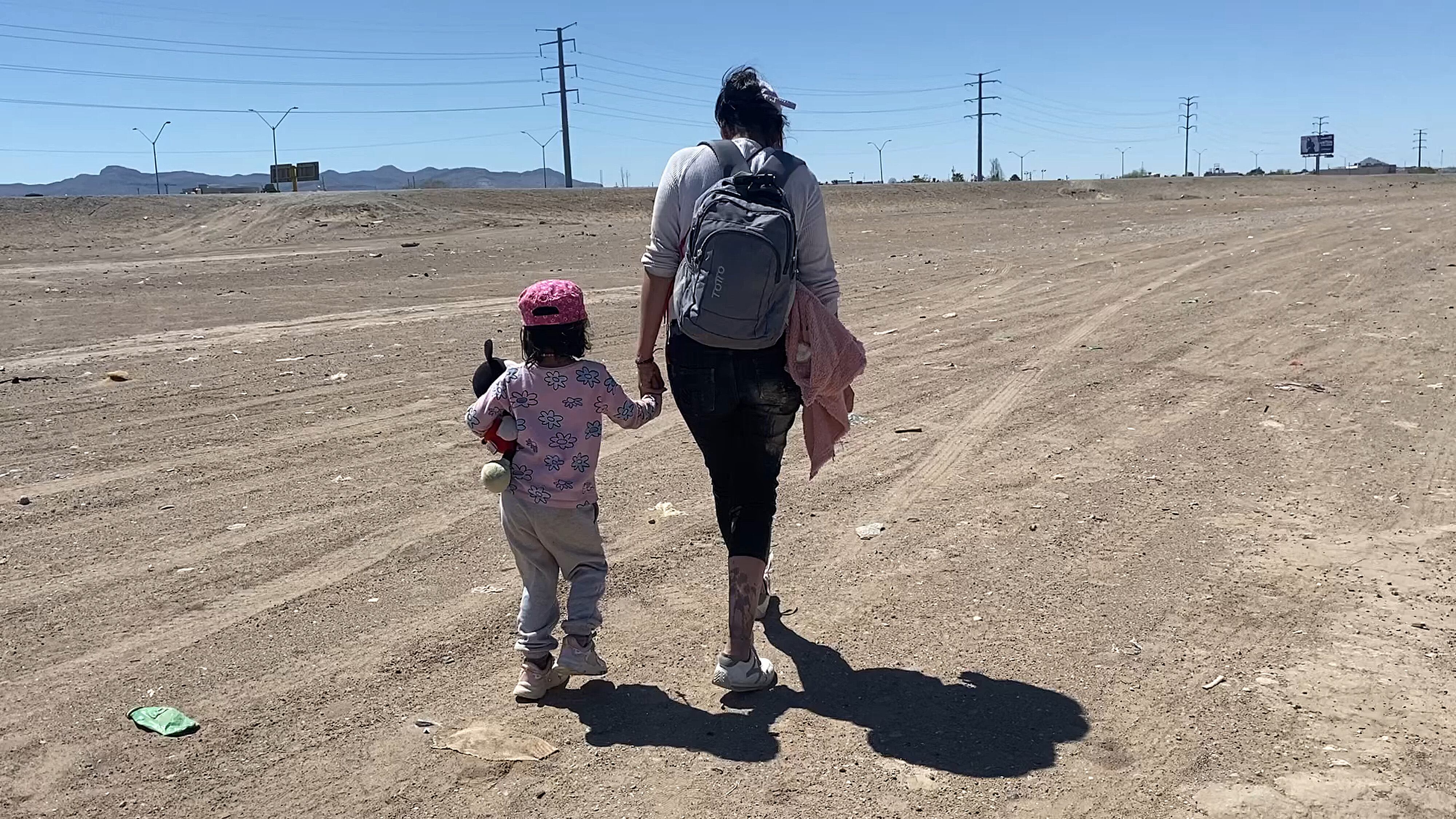 MEX4387. CIUDAD JUÁREZ (MÉXICO), 13/04/2024.- La empresaria colombiana Yesica Borda, camina junto a su hija el 12 de abril de 2024, cerca de muro que divide México con Estados Unidos en Ciudad Juárez, Chihuahua (México). Además de migrantes de bajos ingresos, la frontera de México con Estados Unidos recibe a cada vez más profesionales de Suramérica que buscan cruzar a toda costa ante la situación económica y de violencia de sus países, como muestran testimonios recogidos por EFE. EFE/Luis Torres / Luis Torres