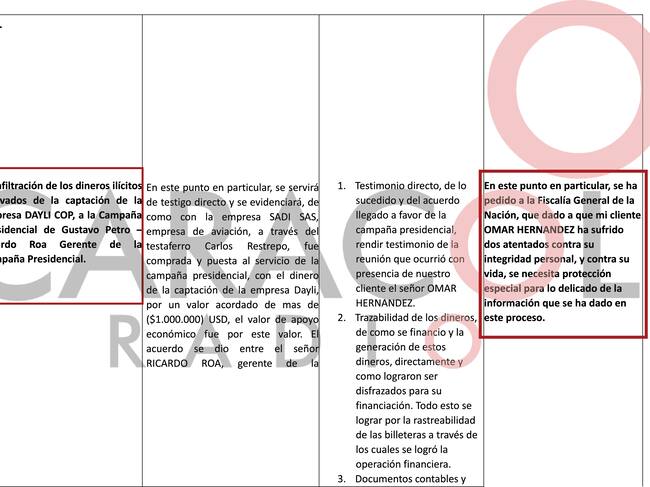 El caso cobró relevancia porque ayer, fue radicada ante la Fiscalía una solicitud para negociar un principio de oportunidad, (el testigo está pidiendo inmunidad total) a cambio de entregar información que comprometería la campaña del hoy presidente Gustavo Petro.