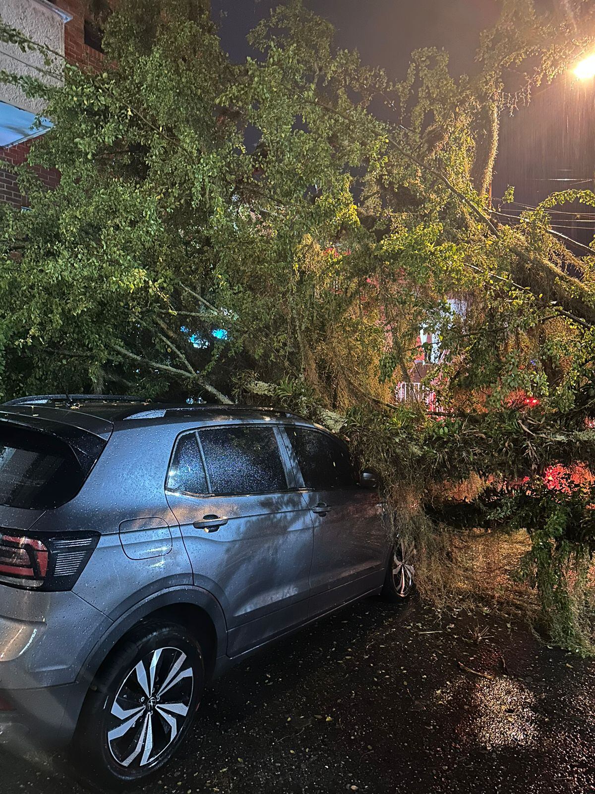 Caída de árbol sobre vehículo al norte de Armenia. Foto Cortesía Bomberos Armenia