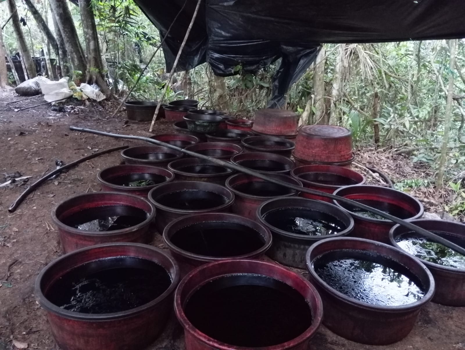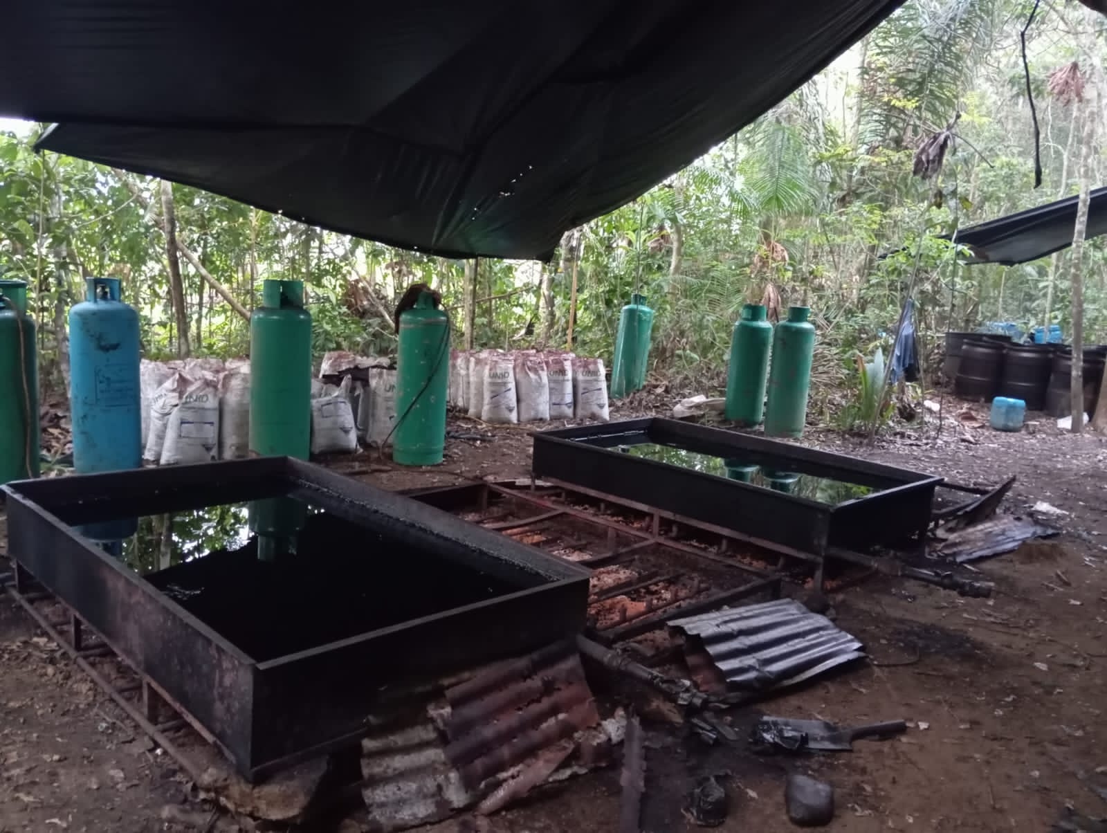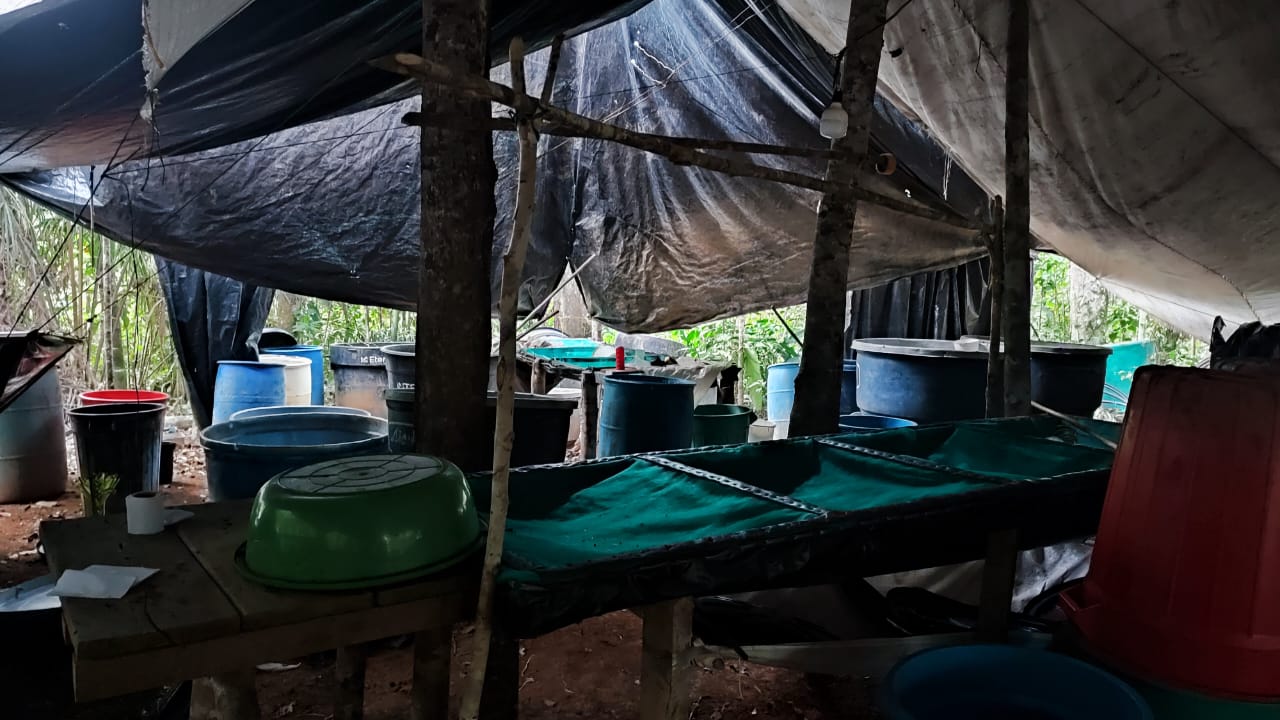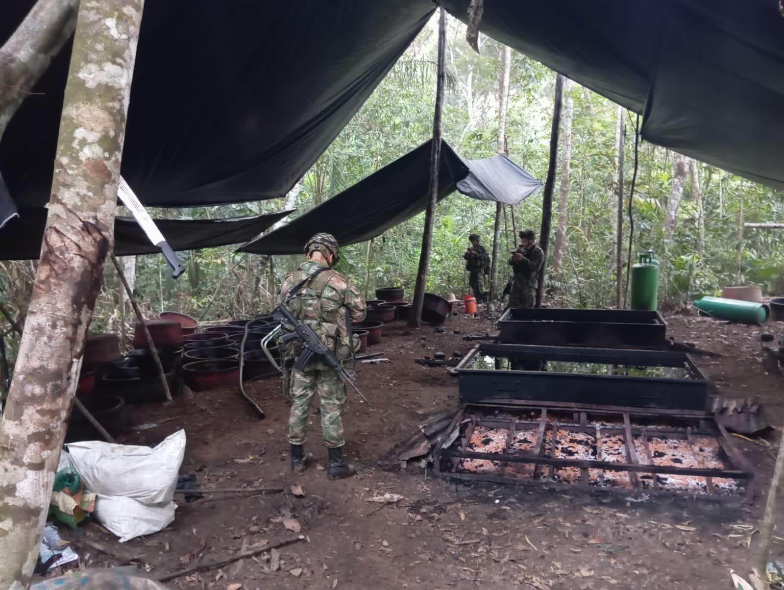 El general Jaime Torres Ramírez, comandante de la Brigada 22 del Ejército Nacional, reportó el hallazgo en esas estructuras de 30 galones de base se cocaína en solución, 1.965 galones de insumos químicos líquidos y más de una tonelada y media de insumos químicos sólidos.