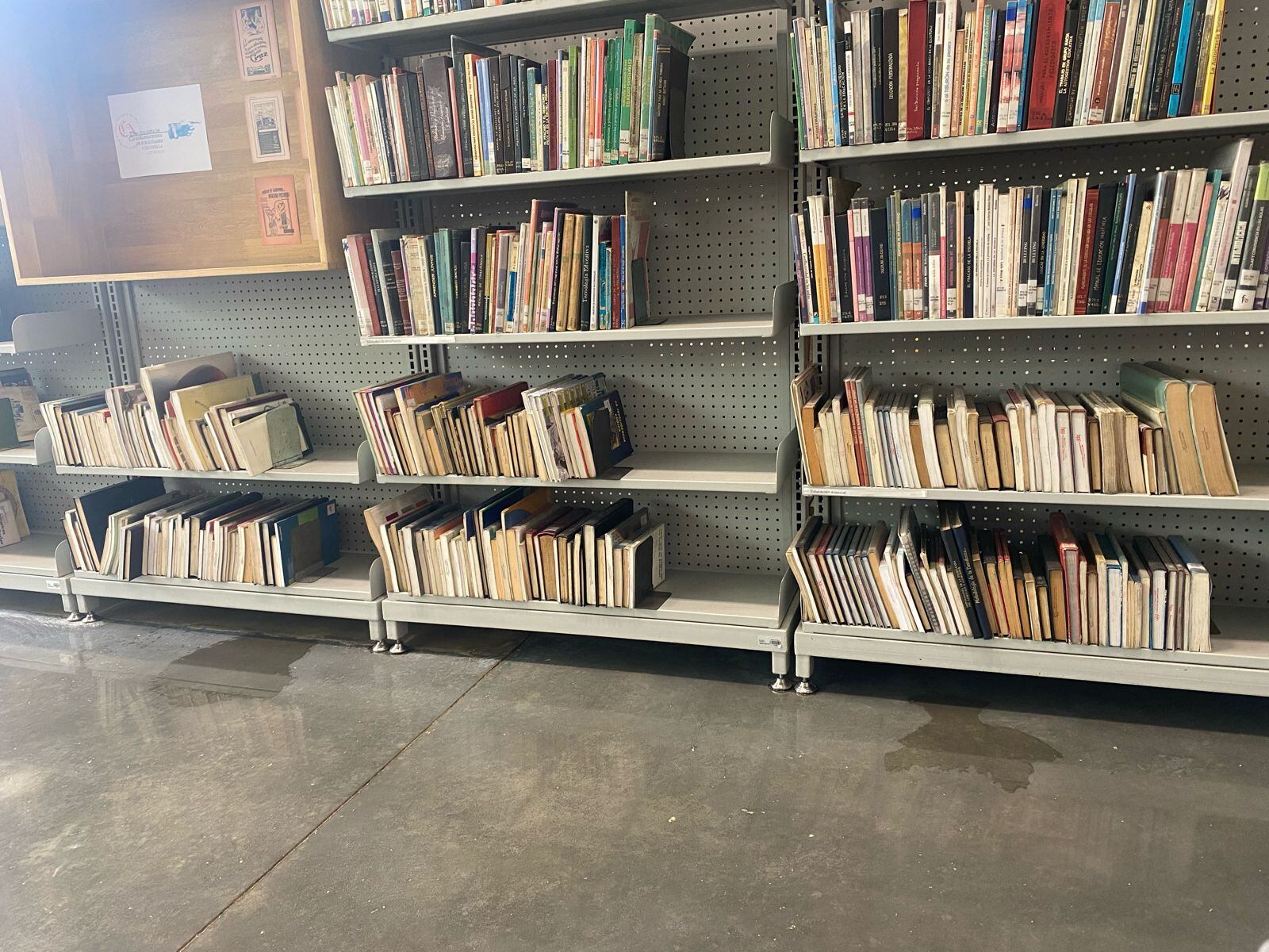 Por grietas y humedades, hay filtraciones de agua que ponen en riesgo las estanterías de libros de la biblioteca de Medellín.