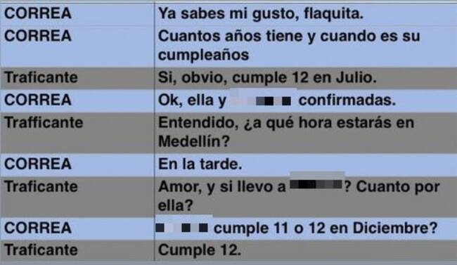 La W tuvo acceso a la acusación contra Correa en la cual se da cuenta de las impactantes conversaciones que este hombre sostenía con la mujer que, desde Medellín, le organizaba los encuentros sexuales con las menores de edad para abusar de ellas.