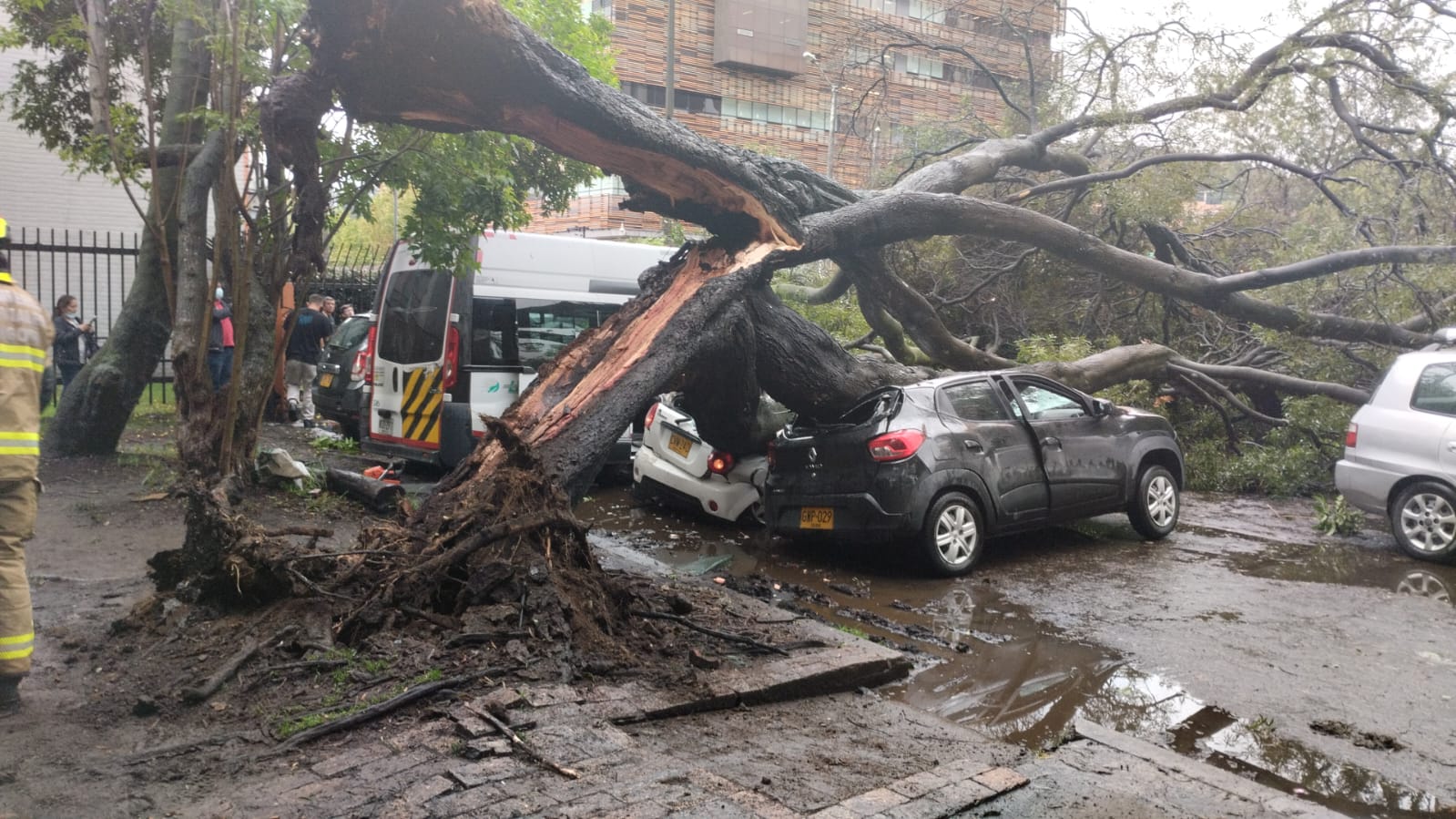 Siete carros resultaron afectados por un árbol que cayó en medio de tormenta en Bogotá