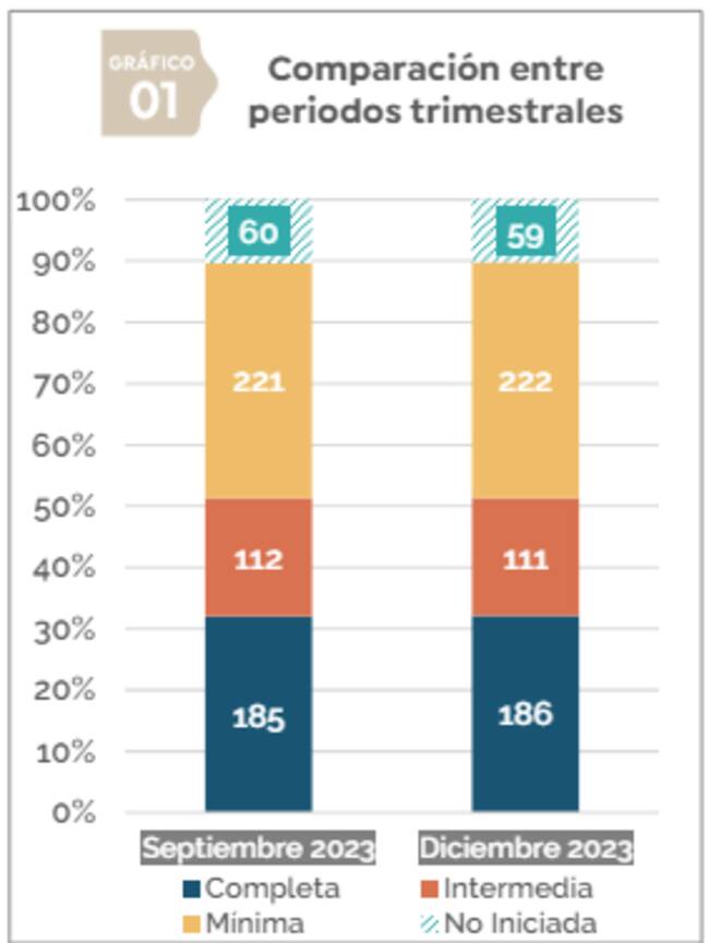 Comparación de la implementación de las disposiciones del Acuerdo de Paz a cierre del tercer trimestre y cuarto trimestre del 2023. (Foto: Instituto Kroc)