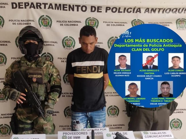 La policía Antioquia informó que capturó a un hombre que estaba incluido en el cartel de los delincuentes más buscados del departamento. Se trata de alias ‘Pantera o Guerrillo’ un presunto cabecilla del Clan del Golfo en varias poblaciones de la subregión del Norte.