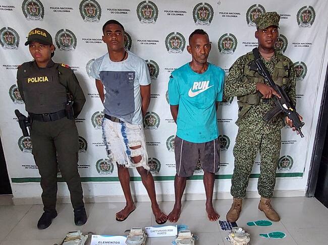 Los dos sujetos conocidos con los alias de ‘Cejitas’ de 22 años y ‘El Gato’ de 46, fueron capturados y llevados a la estación, donde posteriormente fueron dejados a disposición de la autoridad competente por el delito de hurto.