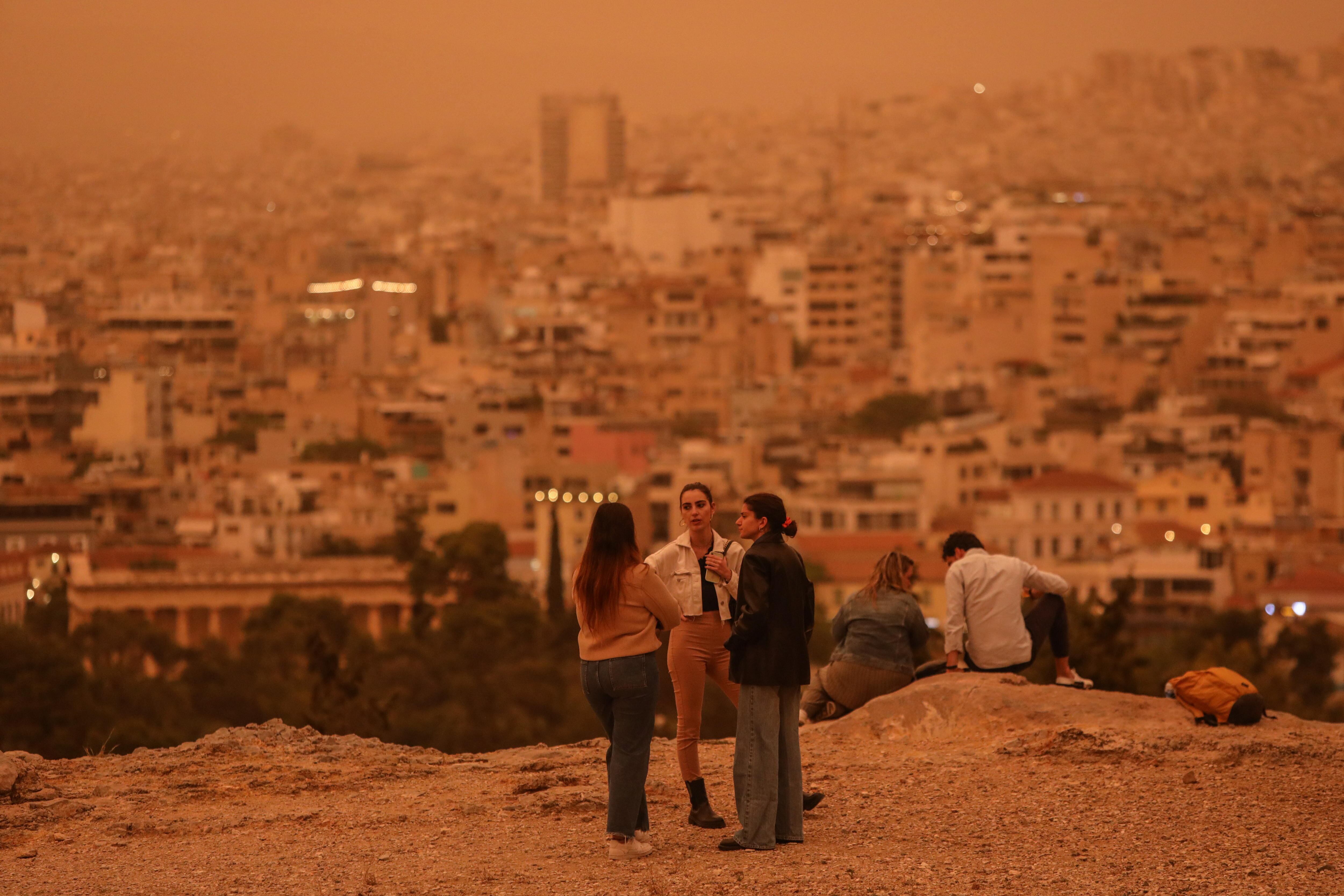 Los cielos sobre el sur de Grecia, incluida la capital Atenas, se han teñido de naranja debido a nubes de polvo del desierto del Sáhara, en uno de los peores episodios de este tipo desde 2018.
