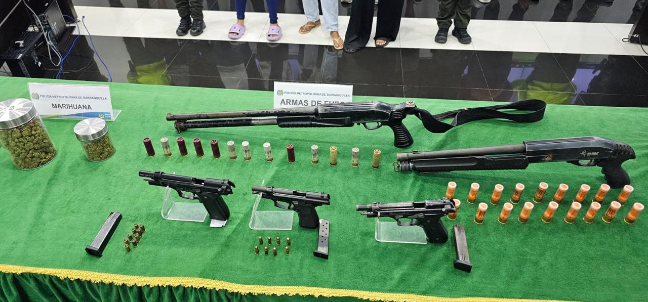 La policía también reportó la incautación de dos escopetas, un arma de fuego, dos pistolas traumática, más de 80 cartuchos, 13.75 kilos de marihuana, 8 pastillas de éxtasis, 25 frascos de ketamina de 30 ml, 10 celulares, dos computadoras portátiles y una Tablet.