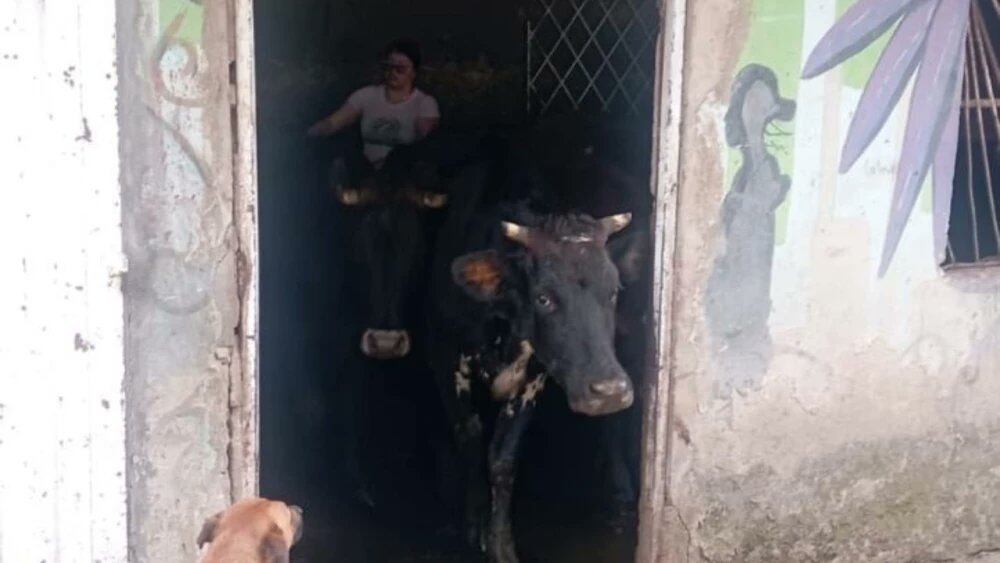 Una modesta casa de dos pisos se convierte en el lugar de descanso de su familia pero a su vez en el establo de 29 reses.