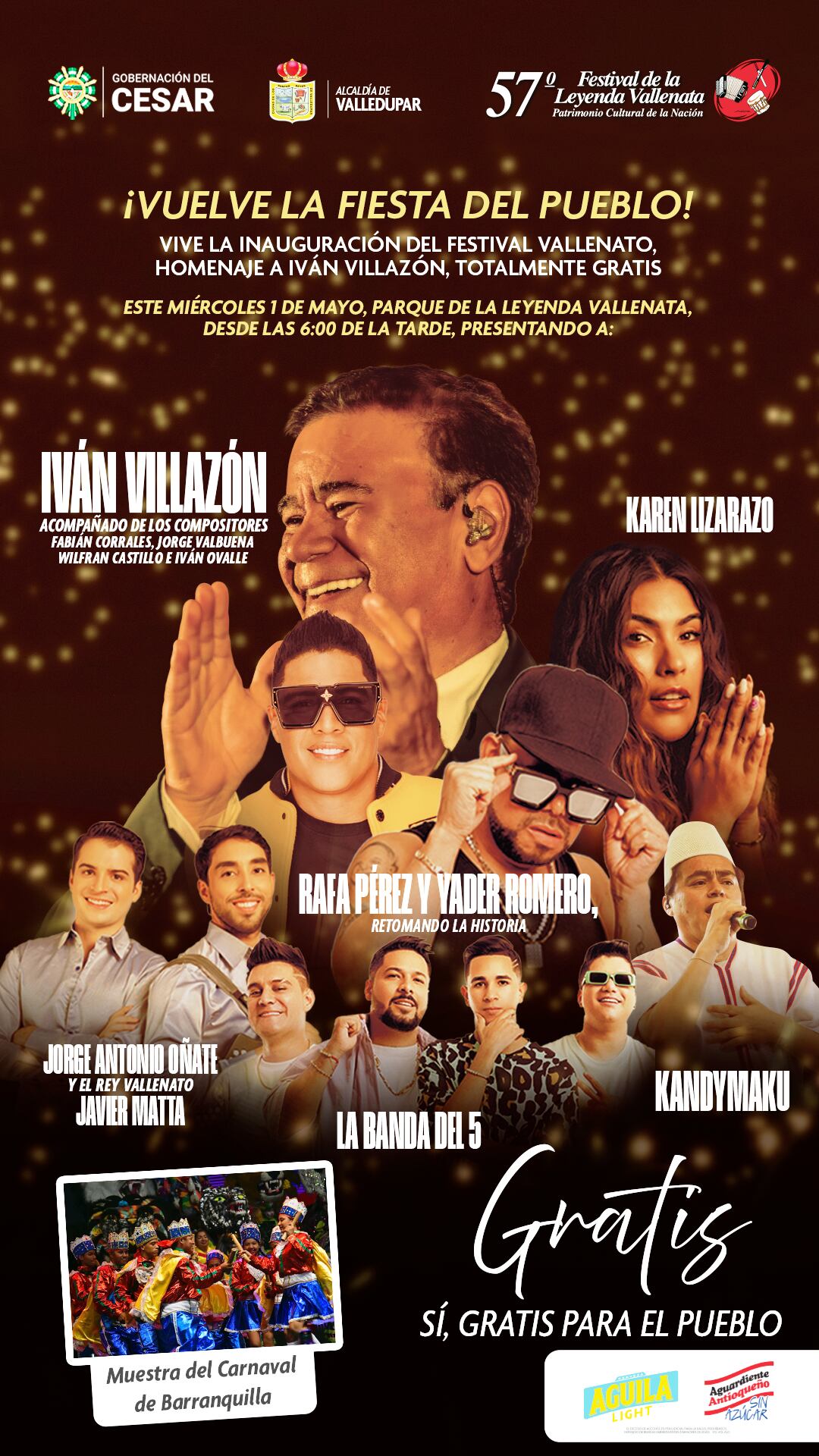 El sonar de los acordeones, las cajas, las guacharacas, los cantos y los versos, pondrán la nota más alta este miércoles 1° de mayo en el Parque de la Leyenda Vallenata ‘Consuelo Araujonoguera’, para engalanar la inauguración de la versión 57 del Festival de la Leyenda Vallenata que rinde homenaje al cantante Iván Villazón, ‘La Voz Tenor del Vallenato’.