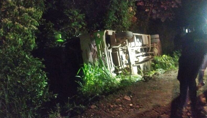 Según información preliminar, el bus se encontraba haciendo su recorrido con los trabajadores de la zona y se salió de la vía, teniendo volcamiento lateral.