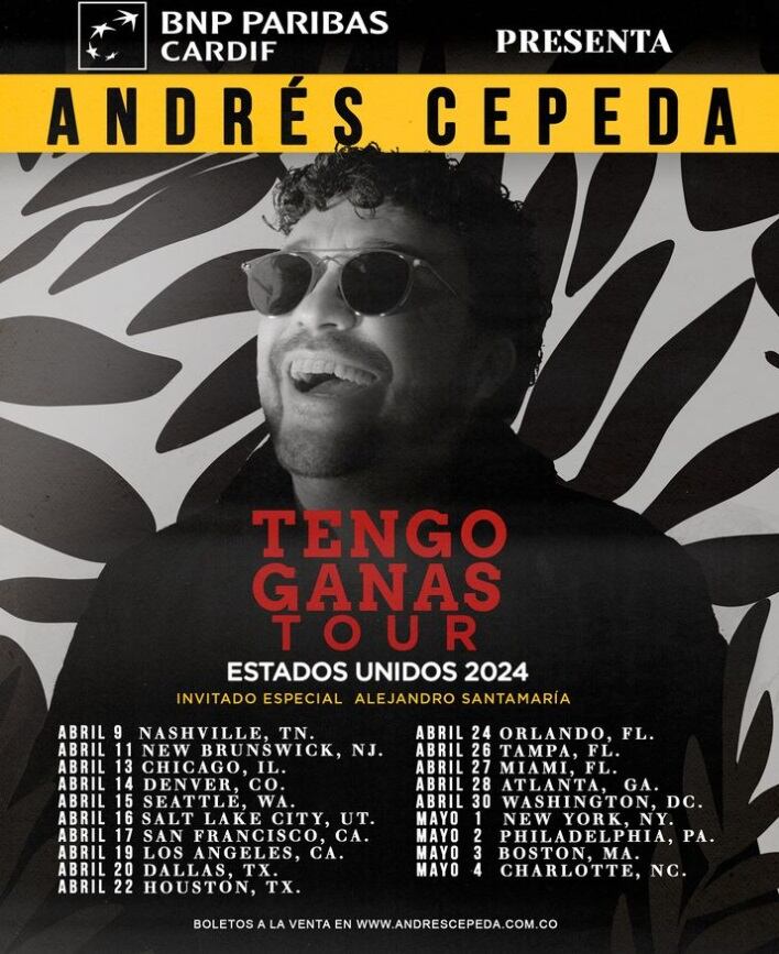 Hoy 1 de mayo su presentación será en el majestuoso Carnegie Hall de Nueva York, donde se han consagrado grandes artistas en sus presentaciones, el 2 de mayo en el Teatro Miller de Filadelfia, PA el 3 de mayo en el Teatro Shubert Regenerate de Boston, y cerrara su gira en Charlotte, el fenómeno musical de Andrés Cepeda continúa su ascenso imparable por todo Estados Unidos.