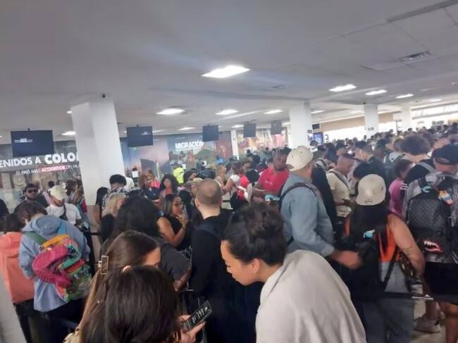El alcalde de Cartagena, Dumek Turbay, denunció hace varios días que solo tres funcionarios de Migración Colombia hacen presencia en la sala internacional de la terminal aérea, lo que ha provocado largas filas de hasta tres horas para atender hasta siete vuelos con cerca de 1.200 visitantes.