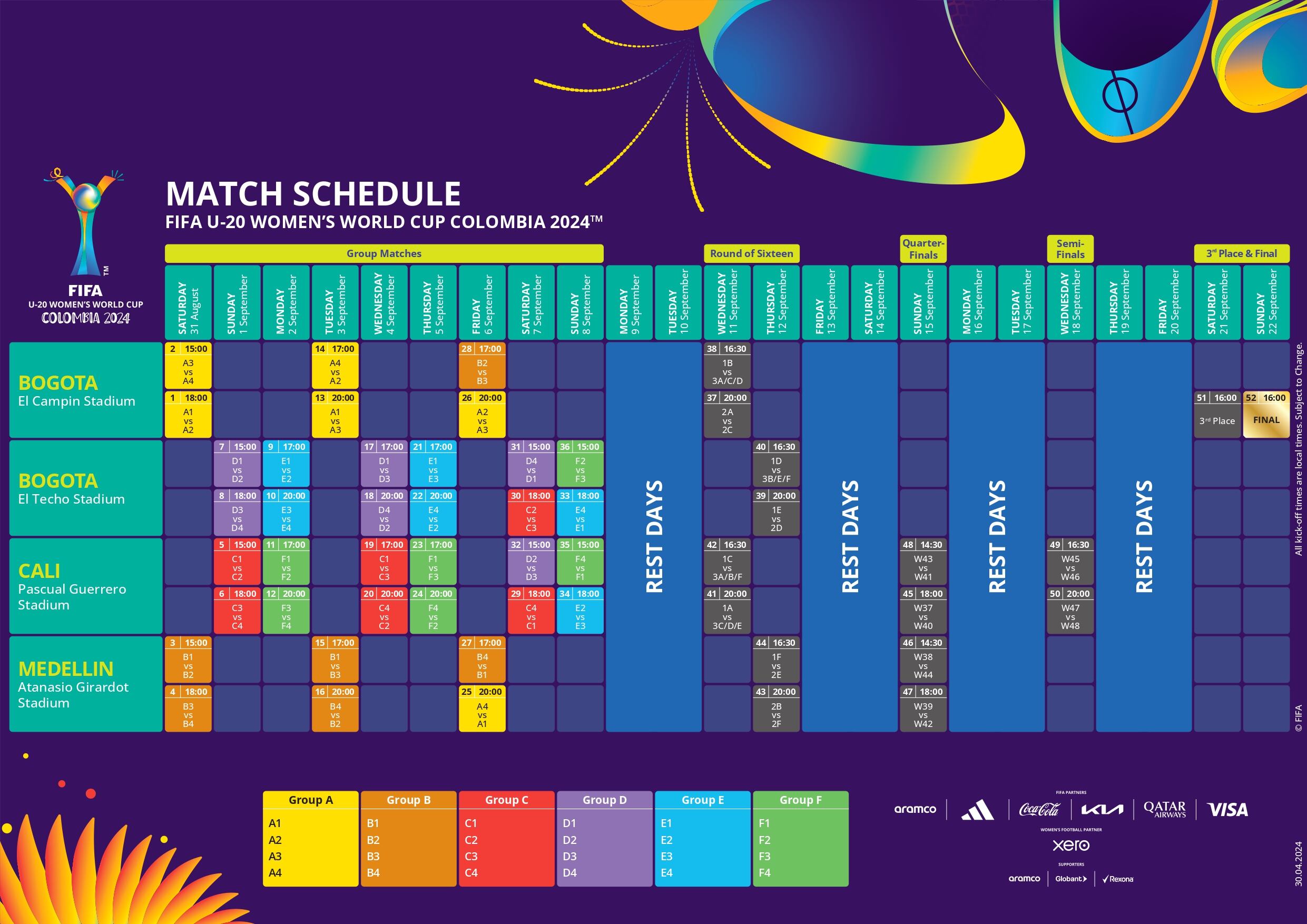 El Mundial Femenino Sub-20, que tendrá a Colombia como anfitrión, confirmó sus fechas y sistema de juego al conocerse las 24 naciones participantes. Desde el 31 de agosto hasta el 22 de septiembre, el torneo organizado por la FIFA pasará por el territorio nacional en los diferentes escenarios deportivos.