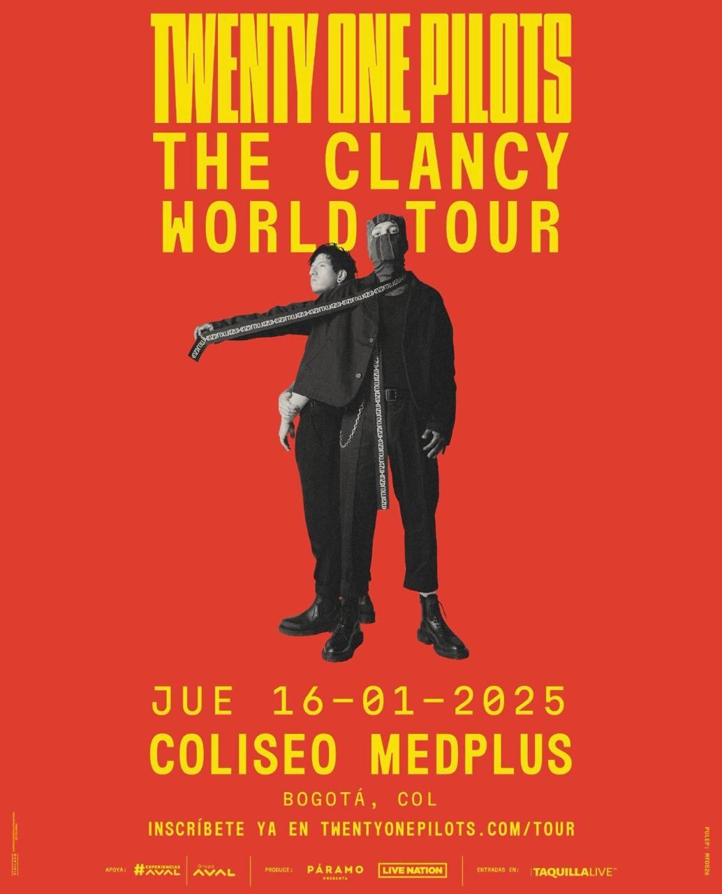 ¡Por fin! La banda estadounidense ‘Twenty One Pilots’ llega por primera vez en concierto en solitario al país, y Colombia es el primer destino de la gira en Latinoamérica.