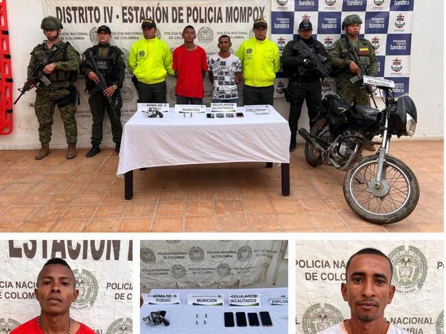 Allí les fueron incautados un revólver calibre 38, cuatro cartuchos calibre 38, una barra de explosivos, cuatro celulares y una motocicleta.